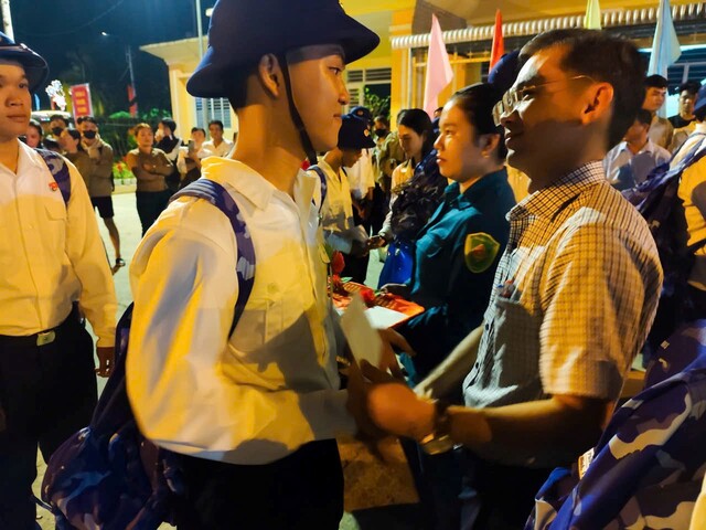 Đồng chí Nguyễn Hồng Phong, Bí thư Đảng uỷ xã tặng quà cho các thanh niên lên đường nhập ngũ