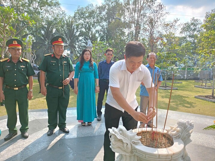 Đại biểu cùng thanh niên lên đường nhập ngũ viếng khu lưu niệm các lực lượng vũ trang tỉnh tại ấp Bờ Dừa