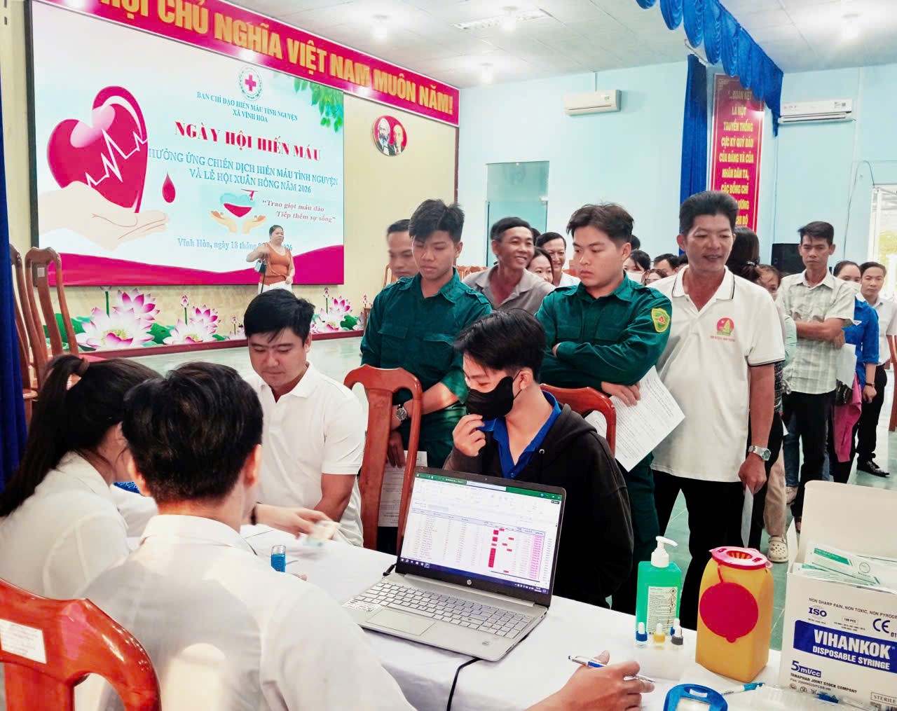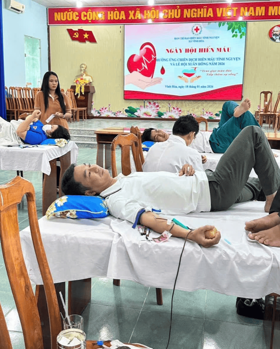 Trong không khí hân hoan của những ngày giáp Tết Bính Ngọ, sáng ngày 18 tháng 01 năm 2026, tại Hội trường UBND xã, Ban Chỉ đạo vận động hiến máu tình nguyện xã Vĩnh Hòa phối hợp Văn phòng HĐND - UBND xã cùng Khoa huyết học và Truyền máu Bệnh viện đa khoa tỉnh tổ chức ngày Hội hưởng ứng Chiến dịch vận động hiến máu tình nguyện dịp Tết và “Lễ hội Xuân hồng” năm 2026. Với thông điệp đầy ý nghĩa “Hiến máu đầu Xuân - Nhân lên hạnh phúc”, ngày Hội đã thu hút đông đảo cán bộ, công chức, viên chức, lực lượng vũ trang và các tầng lớp nhân dân trên địa bàn xã cùng tham gia.
