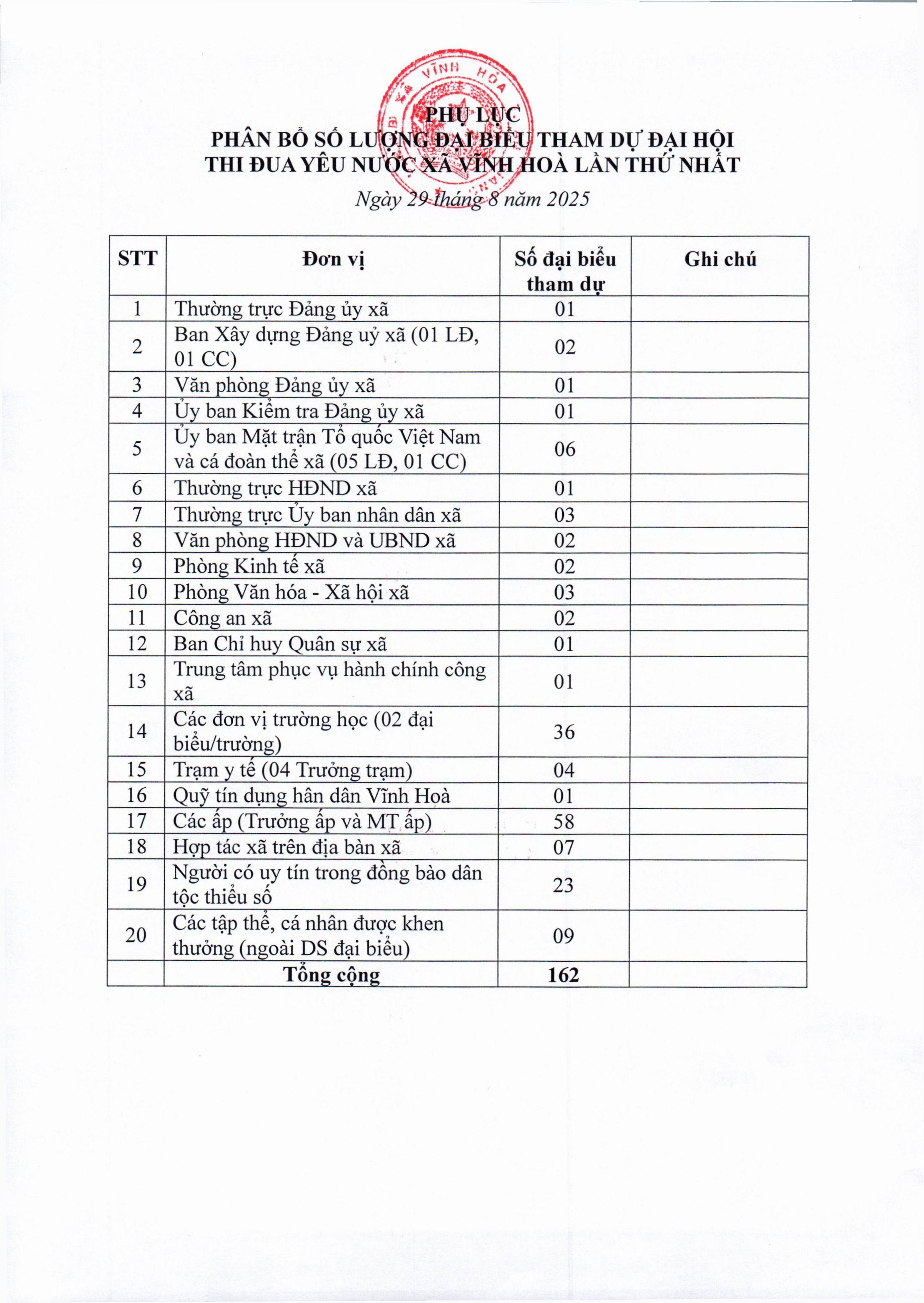 GIẤY MỜI Tham dự Đại hội thi đua yêu nước xã Vĩnh Hòa lần thứ I, giai đoạn 2025-2030!